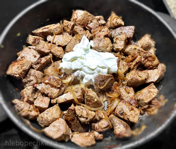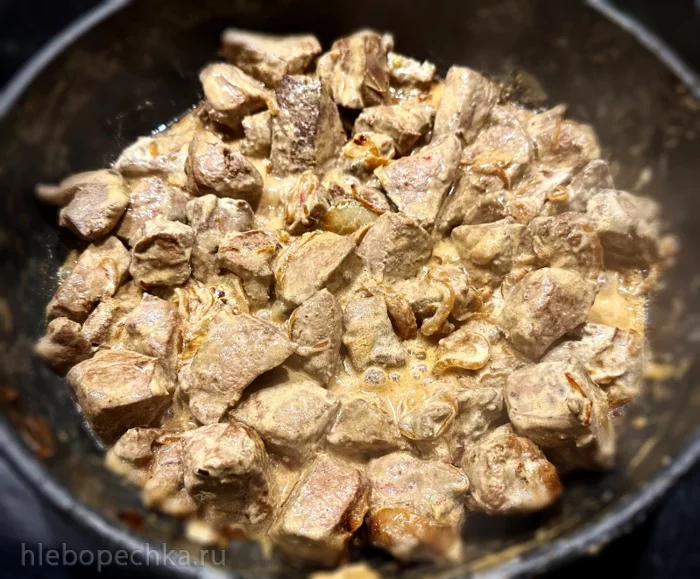 Две столовых ложки сметаны. С верхом. К печёнке добавил.