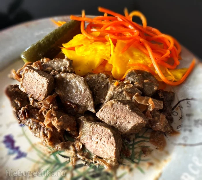 Конечно. Можно было и пюрешку замутить. К такой печёнке было бы не вредно. Или там гречку - макароны.... Но! Вот с таким солёно-островатым приложением печёнка сошла на «ура»!
