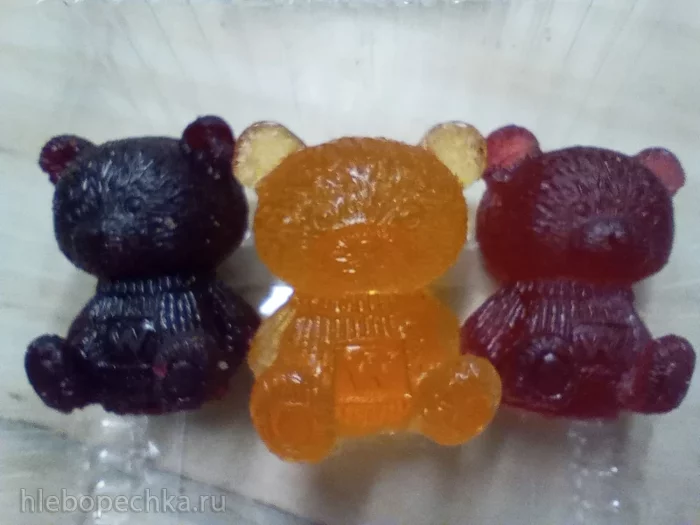 Делала три варианта базовой жидкости: чай каркаде, отвар высушенного жмыха черной смородины и вариант на сахаре и магазинном яблочной соке для угощения. Также были отлиты мишки и зайчики.