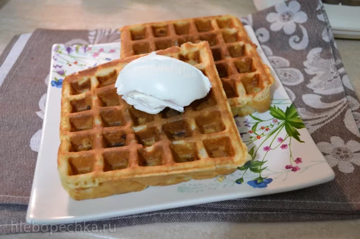 Подавать вафли с различными вкусовыми добавками, например с густыми сливками 35%