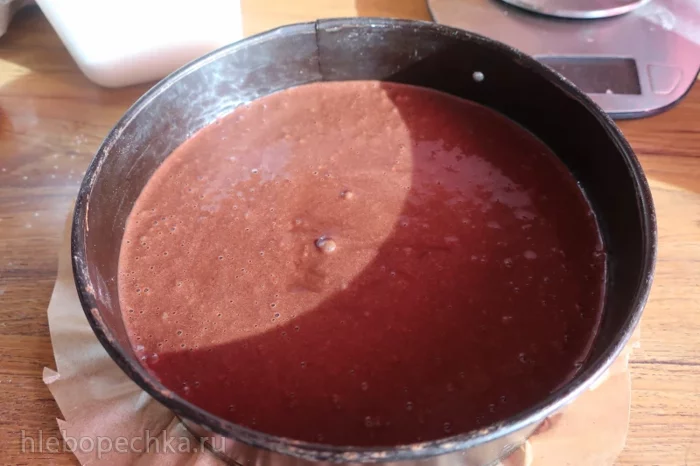 Тесто перелить в форму. Выпекать в разогретой до 180гр духовке минут 40-45. Готовый бисквит остудить и завернуть в пленку. Убрать в холодильник на несколько часов.