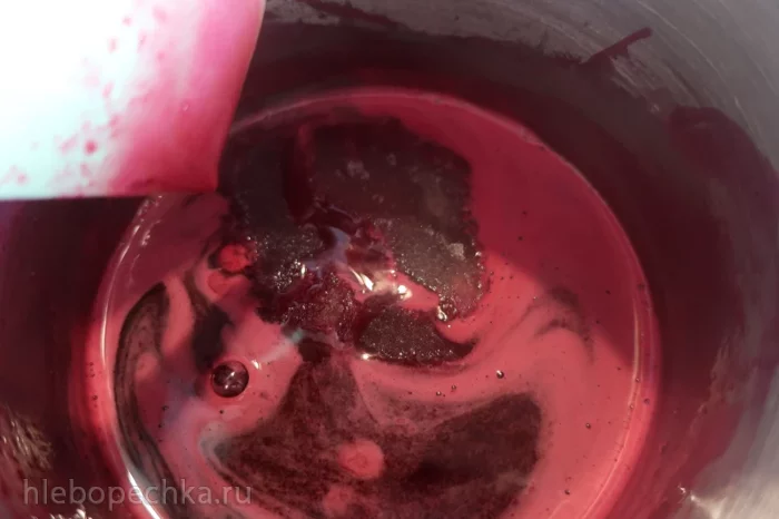 Снять с огня и ввести набухший желатин. Перемешать и вылить в форму диаметром 16 см. Заморозить.