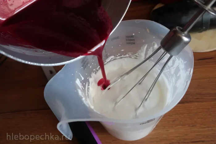 Сливки взбить до пышности и влить вишневую массу.