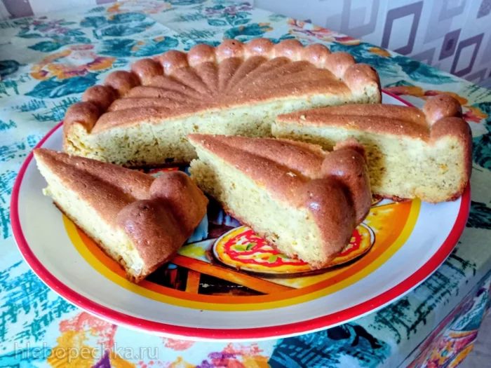 Готовый кекс достать из духовке, и не вынимая из формы полить апельсиновым соком.