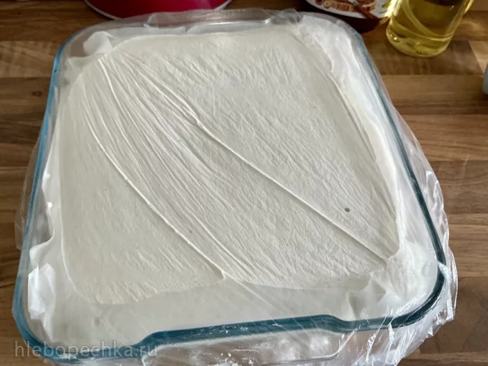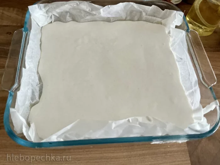 Переложить в форму, застеленную бумагой. Бумагу сбрызнуть растительным маслом.