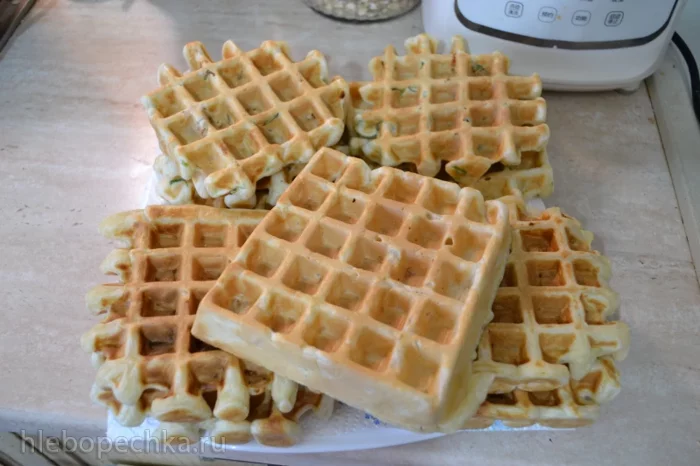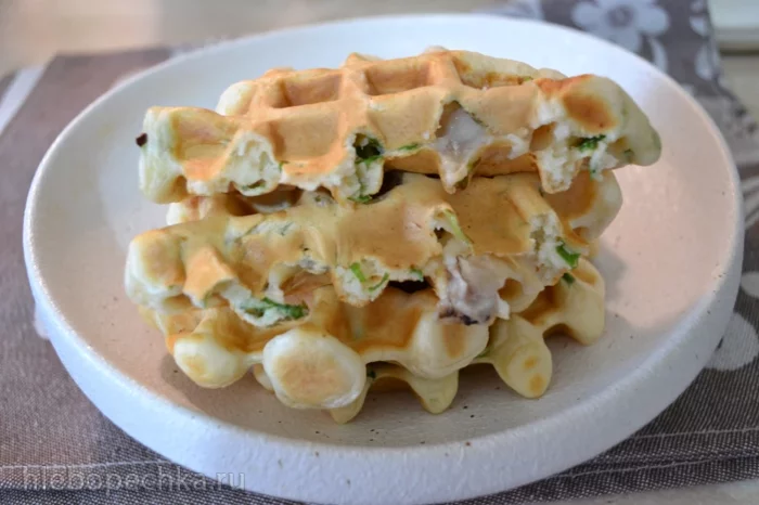 Приготовить тесто для оладий/вафель любым удобным способом, не сладкое.