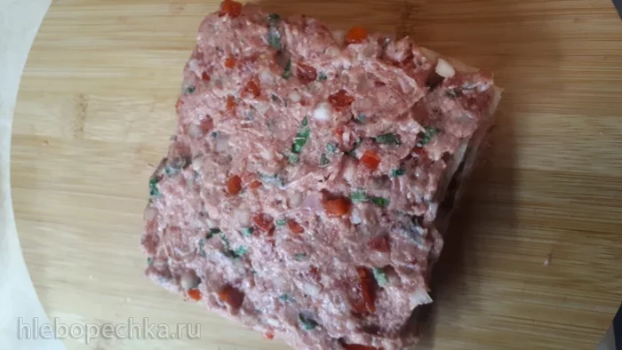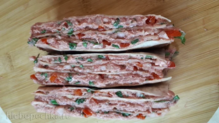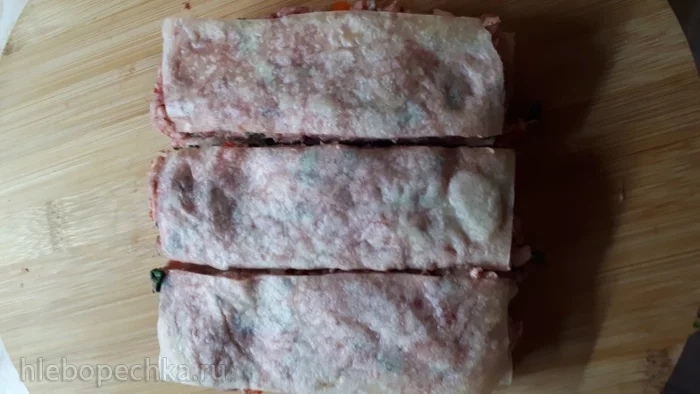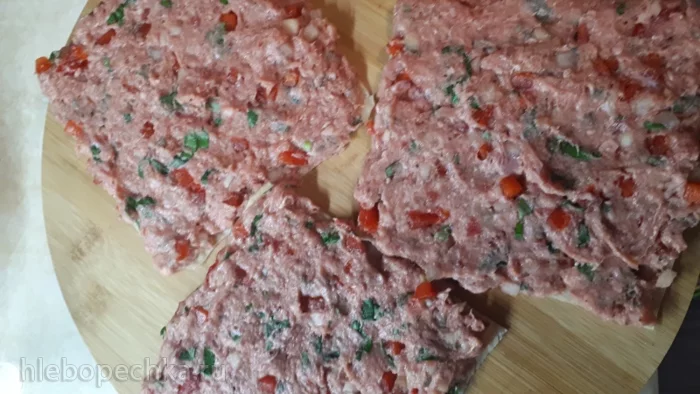 На три лепешки выложила готовый фарш.