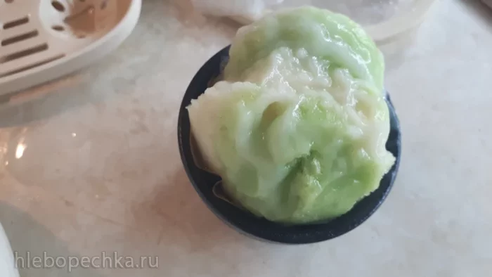 Я делала в многофункциональной яйцеварке, поэтому формы у меня были малышки (стопки и соусники). Я проложила их бумагой для выпечки.