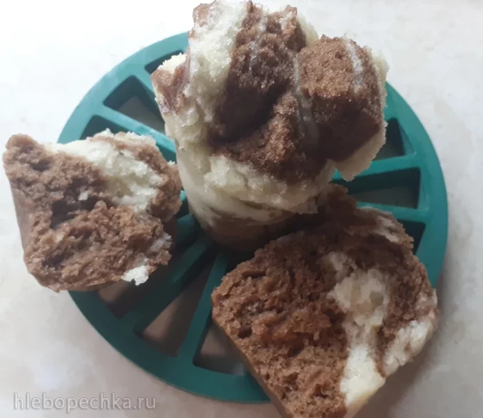 Раньше делала кексы, в которых тесто делила на 2 части. В одну добавляла 1 ст. ложку какао.
