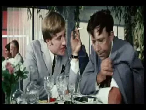27. Помните? «ДитЯм — мороженное, бабе — цветы!» Герой Миронова подходит к столику, держа в руках эскимо на палочке, а через несколько секунд оно превращается в шарики мороженного в вазочках. Чудо!