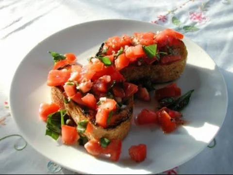 Парочку помидоров освободить от кожи (сверху сделать крестообразный надрез, залить кипятком на минутку, и легко снять кожицу), мелко порезать, 3-4 дольки чеснока, тоже мелко нарезать помидоры, все смешать со столовой ложкой бальзамического уксуса, парой столовых ложек оливкового масла, соль, перец по вкусу. Я туда же добавляю мелко порезанный базилик. Если получается много, складываю в банку и в холодильник.