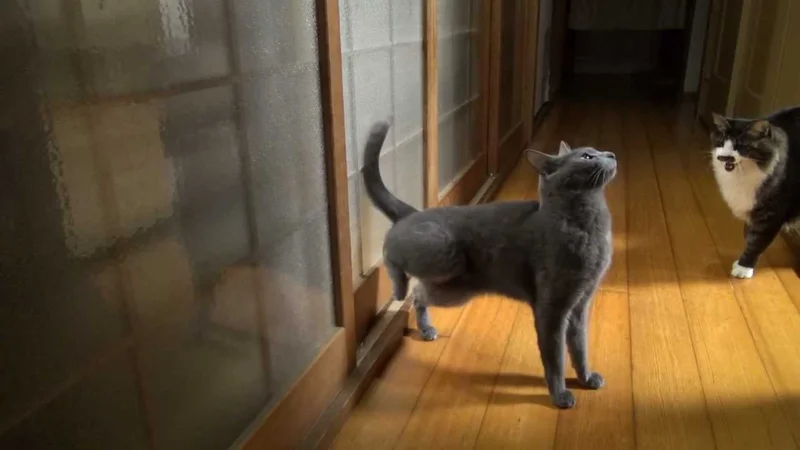 культурный японский кот - стучит, чтоб не поставить хозяев в неловкое положение