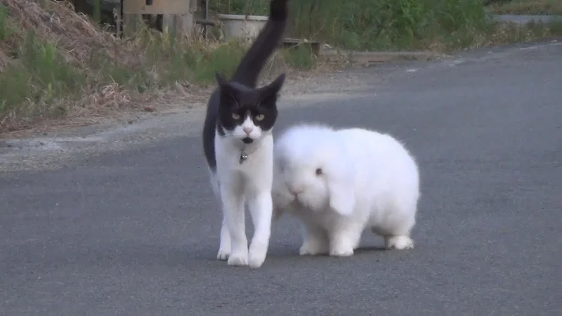 Живет необычное семейство в Японии. Маму-кошку зовут Момо, а ее белоснежного ушастого сына-кролика - Моко. Малыша Моко принесли в дом совсем крохой, поэтому уже взрослая Момо прониклась к нему материнскими чувствами и стала заботиться о нем, как о своем ребенке.