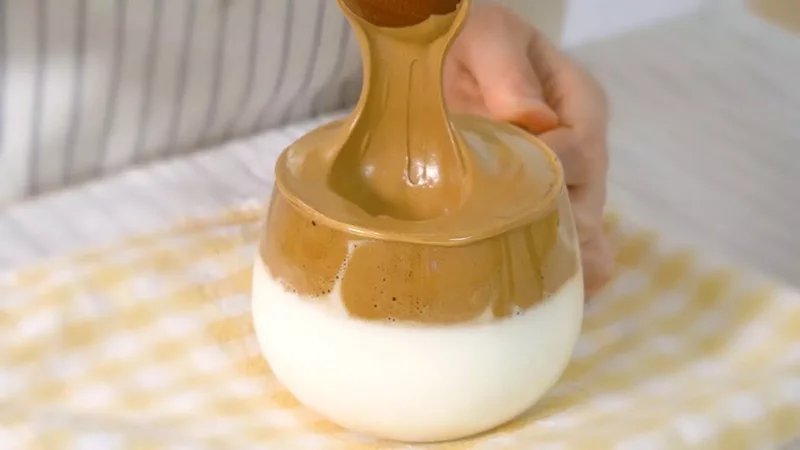 Соотношение кофе: сахар: вода 1:1:1, эта смесь взбивается блендером до «стоячих пиков», потом выкладывается в молоко, перемешивается и пьётся. Пишут можно заменить взбивание блендером 400 перемешиваниями ложечкой вручную Молока должно быть намного больше чем смеси кофе, сахара и воды, иначе это безумно крепко.