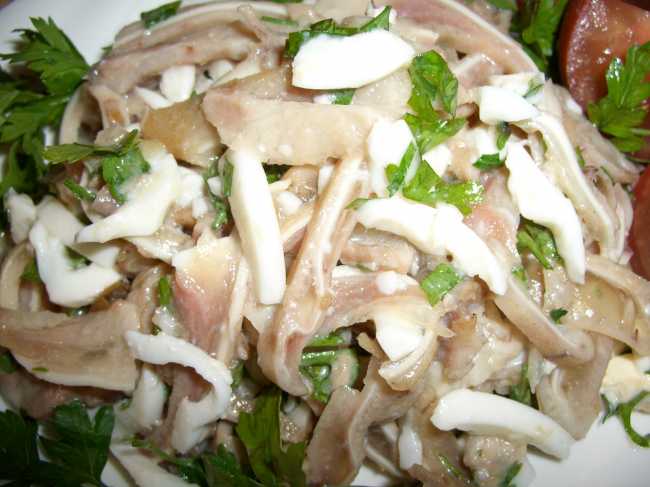 Нарезать свиные уши тонкой длинной соломкой, вдоль всей поверхности ушей.